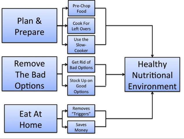 To avoid diving into the scientific literature, let’s think about your own experiences. How often do you consume something unhealthy because it is there? How often do you actively go pursue unhealthy foods? For example, if you are hungry and want something to eat, how likely are you to eat what is available versus going on a mission to get something specific?If you go to the fridge and there is a bowl full of prepared vegetables, left over roasted meat, or a piece of fruit would you choose that over deciding to bake a batch of cookies? What if the situation was reversed? There are cookies in the pantry but you know you should take the 30 minutes it takes to sauté up some meat and veggies, what would your choice be? I know from my experiences that I often tend to choose what is available first. In fact, I always make sure I have a meal or two worth of what I consider health food ready to go in my fridge in case I am too pressed for time to cook. Even though I have the best intentions, sometimes convenience overrides me knowing what I should be doing.